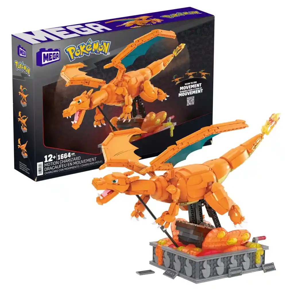 Siente el calor con esta elegante y altamente detallado Charizard en movimiento, nuestro set de construcción más épico hasta hoy. Construye el modelo y gira la manivela para ver cómo Charizard se mueve hacia delante y atrás mientras aletea y la lava se mueve. La base detallada incluye placas de nombres intercambiables en diferentes idiomas para varias opciones de exhibición. Este llamativo set de seguro destacarán en cualquier colección. Los colores, las decoraciones y detalles pueden variar.