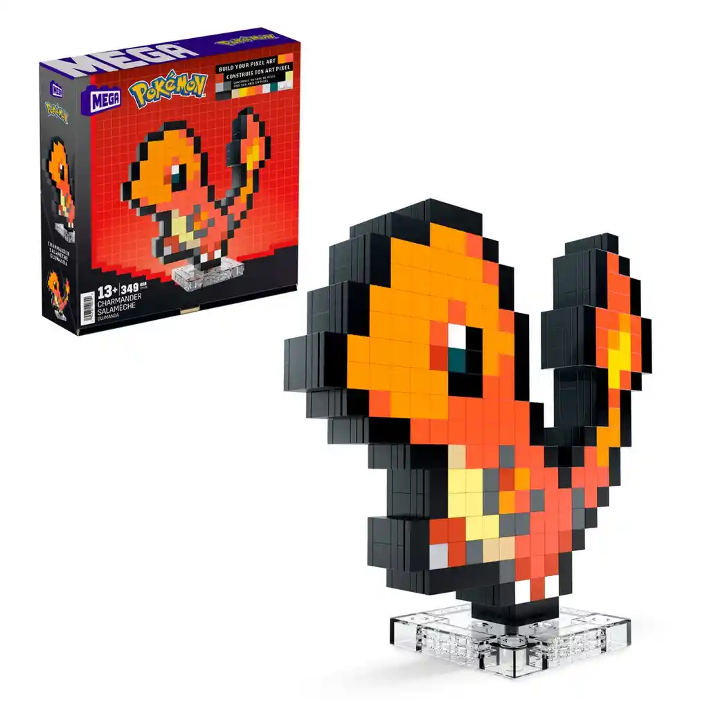 Decora tu espacio y construye tus Pokémon favoritos con MEGA. Construye a Pikachu bloque por bloque para crear una figura de inspiración retro, con Pixel Art oficial de Pokémon. Exhíbelo en tu escritorio o colócalo en la pared para mostrar tu amor por Pokémon. Los colores, las decoraciones y detalles pueden variar.