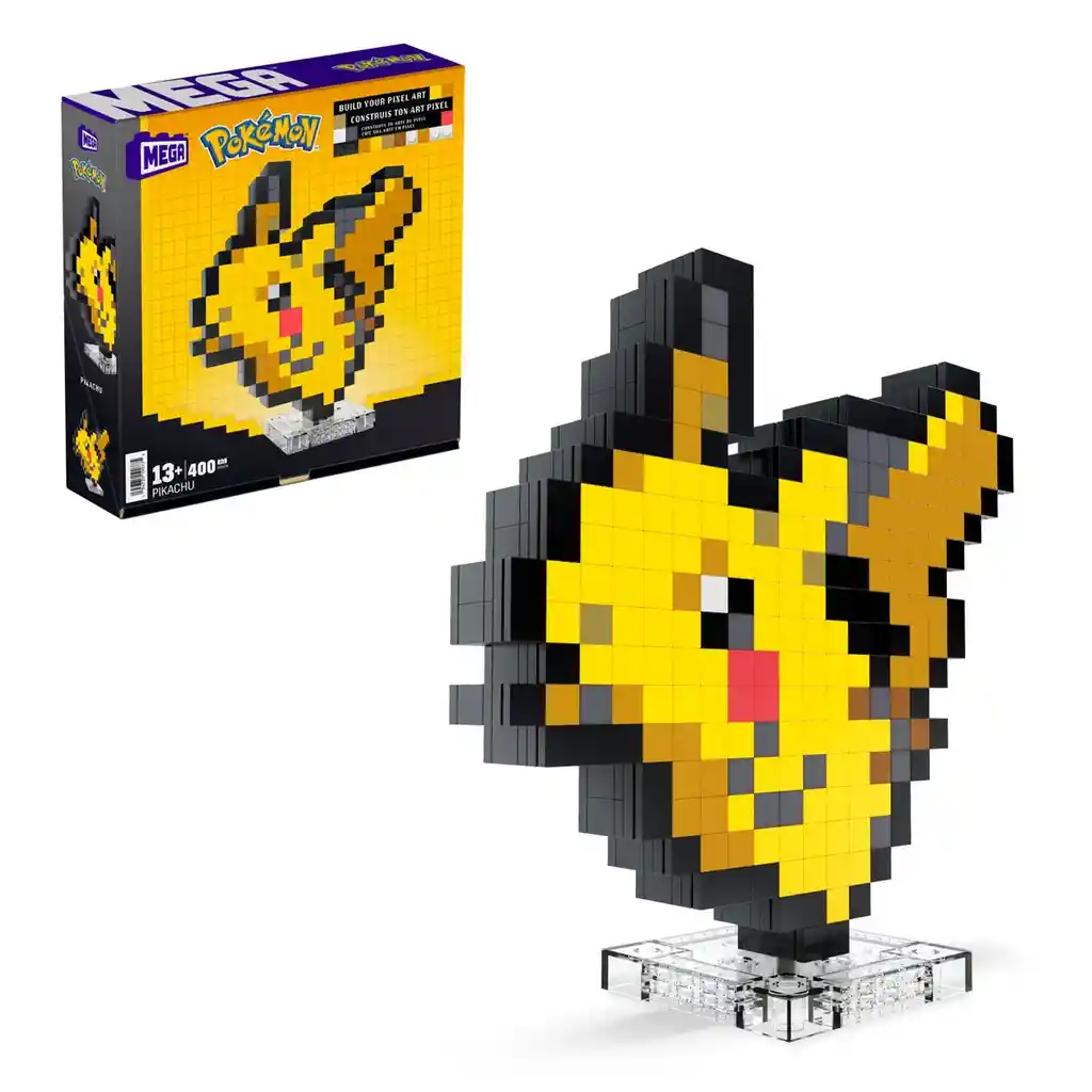 Decora tu espacio y construye tus Pokémon favoritos con MEGA. Construye a Pikachu bloque por bloque para crear una figura de inspiración retro, con Pixel Art oficial de Pokémon. Exhíbelo en tu escritorio o colócalo en la pared para mostrar tu amor por Pokémon. Los colores, las decoraciones y detalles pueden variar.