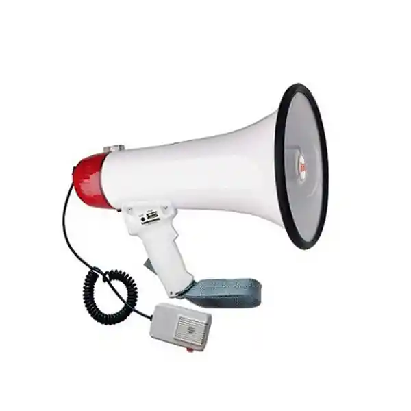 El Nippon América Er-471 es un Megáfono Recargable de 35 Vatios Con Micrófono Incorporado y Usb. Esta Unidad Viene Con un Grabador Incorporado Que Puede Repetir Continuamente el Mensaje Grabado. El Er-471 También Tiene Una Sirena Incorporada y un Control de Volumen Variable. Este Megáfono Funciona Con Pilas y es Completamente Recargable.