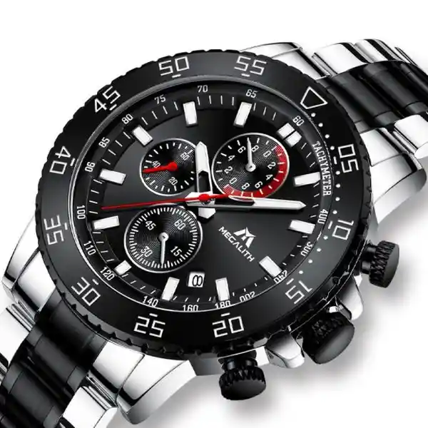 Reloj de Pulsera Para Hombre Megalith. Reloj Tipo Aviador de Acero Inoxidable. Deportivo, Resistente al Agua (Lavado de Manos y Lluvia), Con Movimiento de Cuarzo y Reloj Cronógrafo.