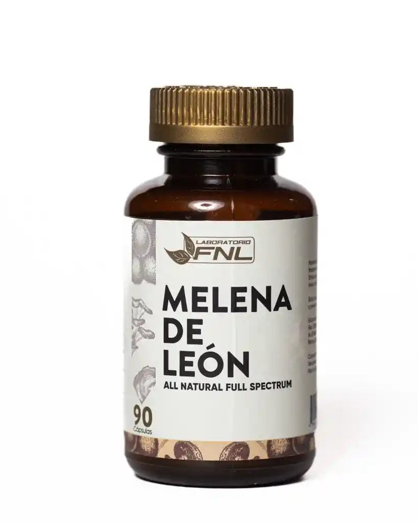 Composición: Melena de león; Gelatina (de la cápsula), Agua. La Melena de león, es un hongo comestible, que describe dentro de sus principales propiedades la mejora en la función cognitiva, promoviendo en ayudar en la reducción de ansiedad y estrés. Además, se adjudican propiedades antioxidantes e inmunológicas, como también de vital apoyo a la salud digestiva.