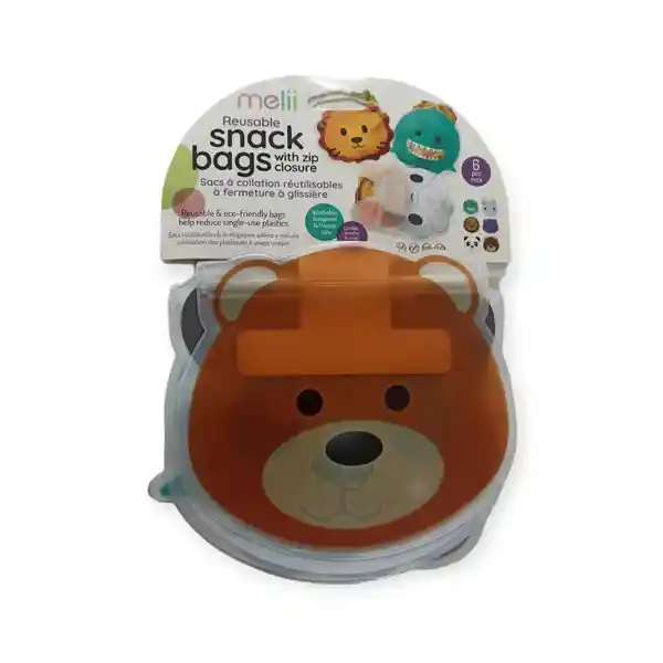 Empacar Snacks Nunca ha Sido Más Adorable Que Con Las Bolsas Reutilizables de Melii. Mantendrán Fresca la Comida de tu Hijo y te Permitirán Deshacerte de Esas Bolsitas de Plástico de un Solo Uso. Empaca de Todo! Sándwiches Frutas Verduras y Galletitas Haciendo Que la Alimentación Saludable Sea Divertida Para Tus Pequeños y Luego Simplemente Lávalas y Reutilízalas Una y Otra Vez. El Juego Incluye 6 Bolsas de Gran Capacidad Con Nuestros Personajes Animales Característicos de Melii: Bulldog Gato León Panda Oso y Tiburón. Características: Incluye 6 Bolsas de Animales. Perfectas Para Empacar Snacks. Lleva Sándwiches Frutas Galletitas Etc. Cuentan Con un Cierre Zip a Prueba de Fugas. Mantienen la Comida Fresca. Ayuda a Reducir Los Plásticos de un Solo Uso. Sin Bpa Sin Plomo Sin Pvc Sin Cadmio. Lavable y Reutilizable.