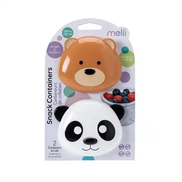 Con 2 Unidades. Pack de 2 Contenedores en Forma de Osos y Pandas!Sus Cuerpos Transparentes te Permiten Ver Sus Contenidos en un Instante. Además su Tapa Hermética Consigue Mantener Los Alimentos Frescos y Aleja la Suciedad. Recipientes Duraderos y Ligeros Perfectos Para Cuando Estás en Casa o en Movimiento. Fácil de Limpiar y Apto Para Lavavajillas en la Rejilla Superior. Información Técnica Material: Silicona (Sin Bpa Sin Plomo Sin Pvc Sin Cadmio)Capacidad: 232 Ml c/Dimensiones: 7.8 x 10 x 8 cm Edad: Desde 3 Años País Marca: Canadá