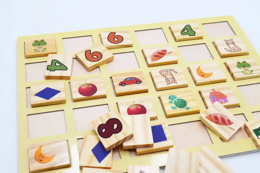 Memorice con tableros e imágenes con piezas de madera. Ideal para jugar en familia. Tamaño aprox de rableros: 30 x 30 cm El memorice estimula capacidades cognitivas como la memoria visual, atención y concentración. Además de enseñar a respetar turnos estimulando la paciencia.