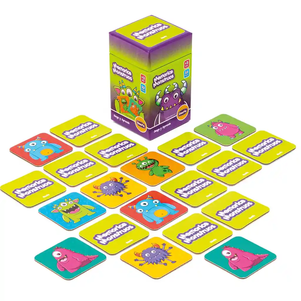 Las primeras etapas de tu pequeño son importantes y estás son más entretenidas y únicas cuando van acompañadas de juegos y diversión. El juego memorice Monstruo de Dactic, permite a los niños desarrollar su capacidad de concentración y memoria asociando las diferentes formas con objetos reales, además favorece la adquisición de habilidades sociales mediante la iniciación en actividades grupales con reglas. Contiene 32 piezas ¡Perfectas para que los niños se diviertan, jueguen y se desarrollen de forma correcta!