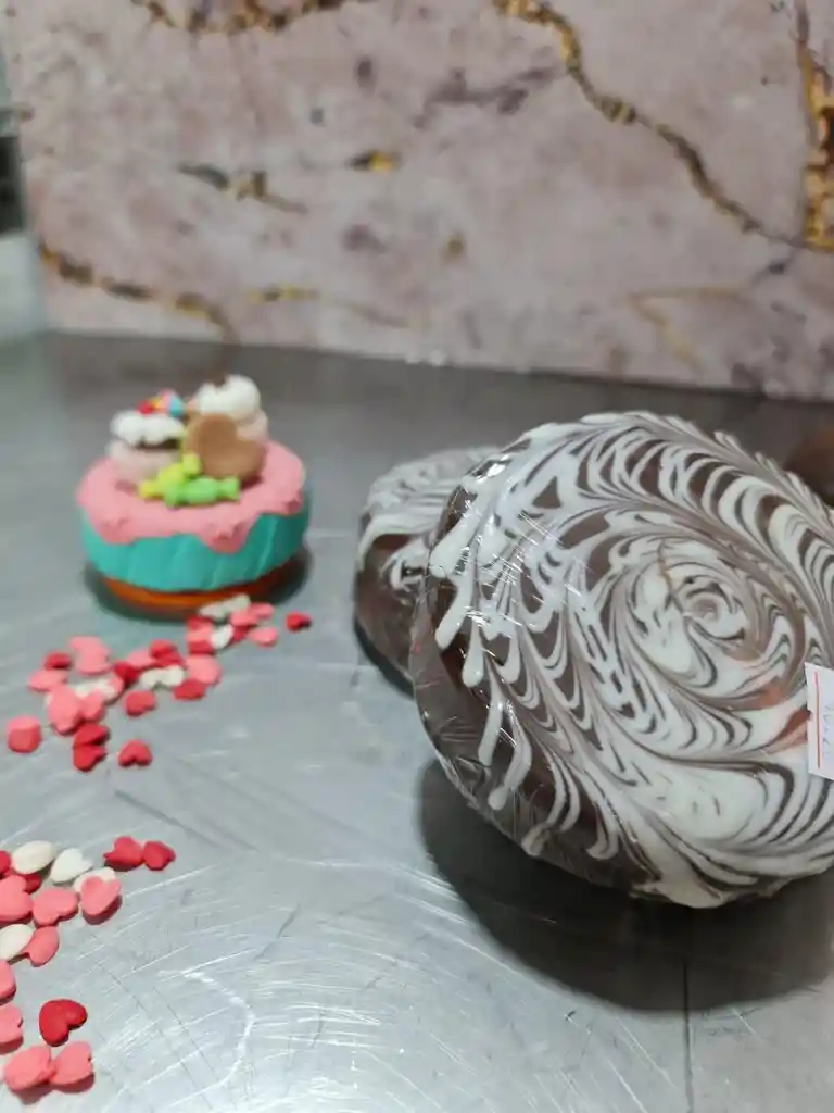 Masa de galleta rellena con manjar y bañada en chocolate.