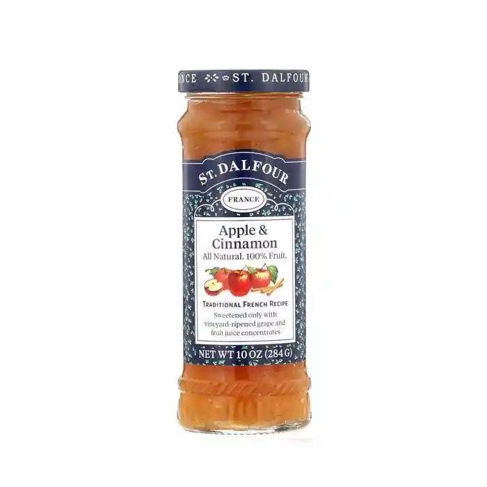 St. Dalfour, mermelada 100% natural,y todos sus sabores contienen sólo la mejor fruta seleccionada, concentrado de jugo de uva que reemplaza la tradicional azúcar, jugo de limón y pecticina que proviene de la manzana y hace que las mermeladas St. Dalfour tengan una consistencia única. Ingredientes principales: Cerezas negra, jugo concentrado de frutas, pectina de frutas y jugo de limon.