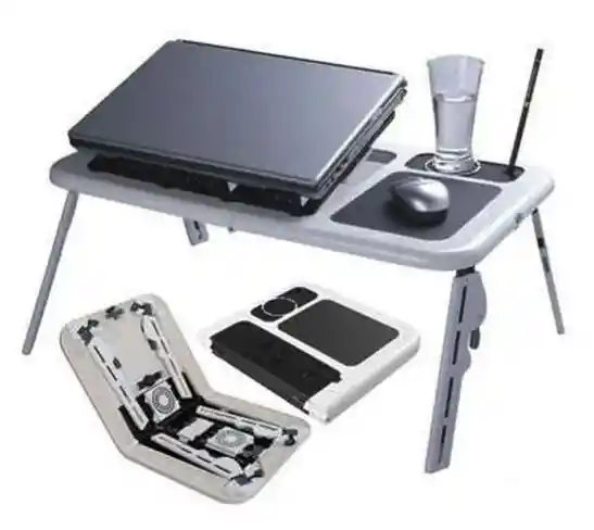 una mesa portátil plegable es una excelente compañía para profesionales altamente móviles con la inclinación de trabajar instantáneamente en sus computadoras portátiles. Esta mesa portátil portátil sorprendentemente ligera con un diseño colorido y moderno le traerá mucha comodidad. Esta práctica y extremadamente compacta mesa puede manejar de manera eficiente y segura todo el marco de una computadora portátil, brindándole a su usuario un tiempo más fácil al tocar los teclados. Cuenta con patas antideslizantes y la parte inferior de la superficie de la mesa está equipada con tapones adecuados para que la computadora portátil no se caiga. No lo dudes, esta mesa portátil vale la pena ordenar. Caracteristicas Escritorio portátil portátil flexible Fácil de usar incluso como nuevo principiante Cada detalle se presta atención y garantiza que cada proceso sin ningún defecto Conveniente para 14 debajo del cuaderno Se puede usar en una oficina, un coche y un viaje. Con dos ventiladores USB y un cable USB universal, puede ser como un enfriador.