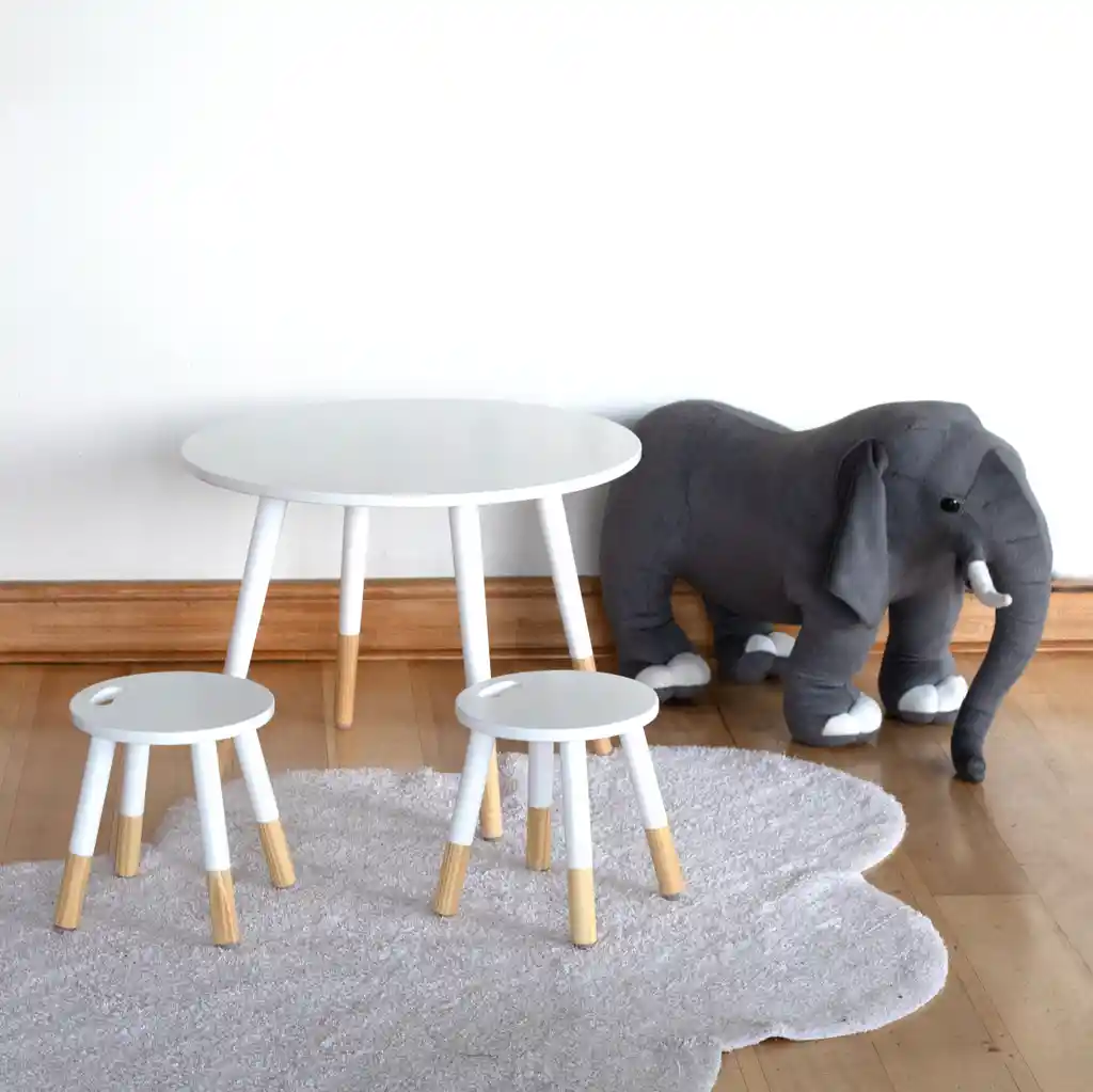 <p>Set de mesa y dos taburetes</p> <p><meta charset="utf-8"><span>Medidas: Mesa 60 x 60 x 46 cms y pisos </span>24 x 24 x 26 cms<br></p>
