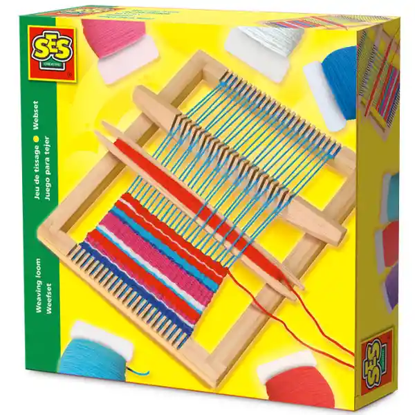 Telar sostenible con accesorios e hilos de diferentes colores para tejer creaciones de magníficos colores. Contenido: 1 Telar de madera 19,5 x 15 cm 60 metros de hilo en diferentes colores 1 Folleto con instrucciones 6+ Años. Fabricado en Holanda.