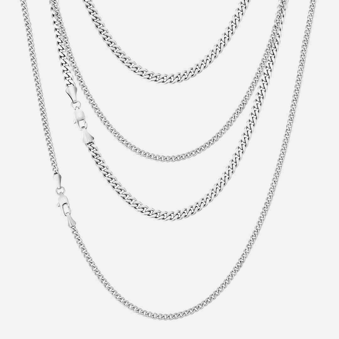 Características✓ Acero inoxidable 316L✓ Rodio✓ Resistente al agua, sudor y calor✓ Hipoalergénico (sin piel verde) Incluye:- Cadena Miami Cuban 5mm 55cm- Cadena Miami Cuban 3mm 60cm