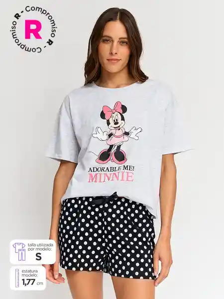 Mickey & Minnie Pijama Navi Dot Gris Melangue XL