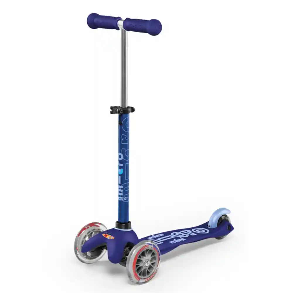 Micro Scooter Mini Deluxe Azul Lo que diferencia el Mini Micro de los demás scooters es su construcción excepcional, excelente calidad y un diseño innovador. Además, el scooter con su sistema de dirección patentado promueve el equilibrio, la coordinación y las habilidades motoras. Características: Edad: 2– 5 años. Altura del conductor: Recomendable hasta 110 cm. Resiste: hasta 30 Kg Tipo de superficie: asfalto. Altura del timón: De 48 cm a 68 cm Peso del scooter: 2,1 kg Tamaño de la caja del scooter: 55 x 14,2 x 26,5 cm Material: aluminio, plástico, silicona Procedencia: Marca de Origen Suizo. Ganador de premios de ingeniería.