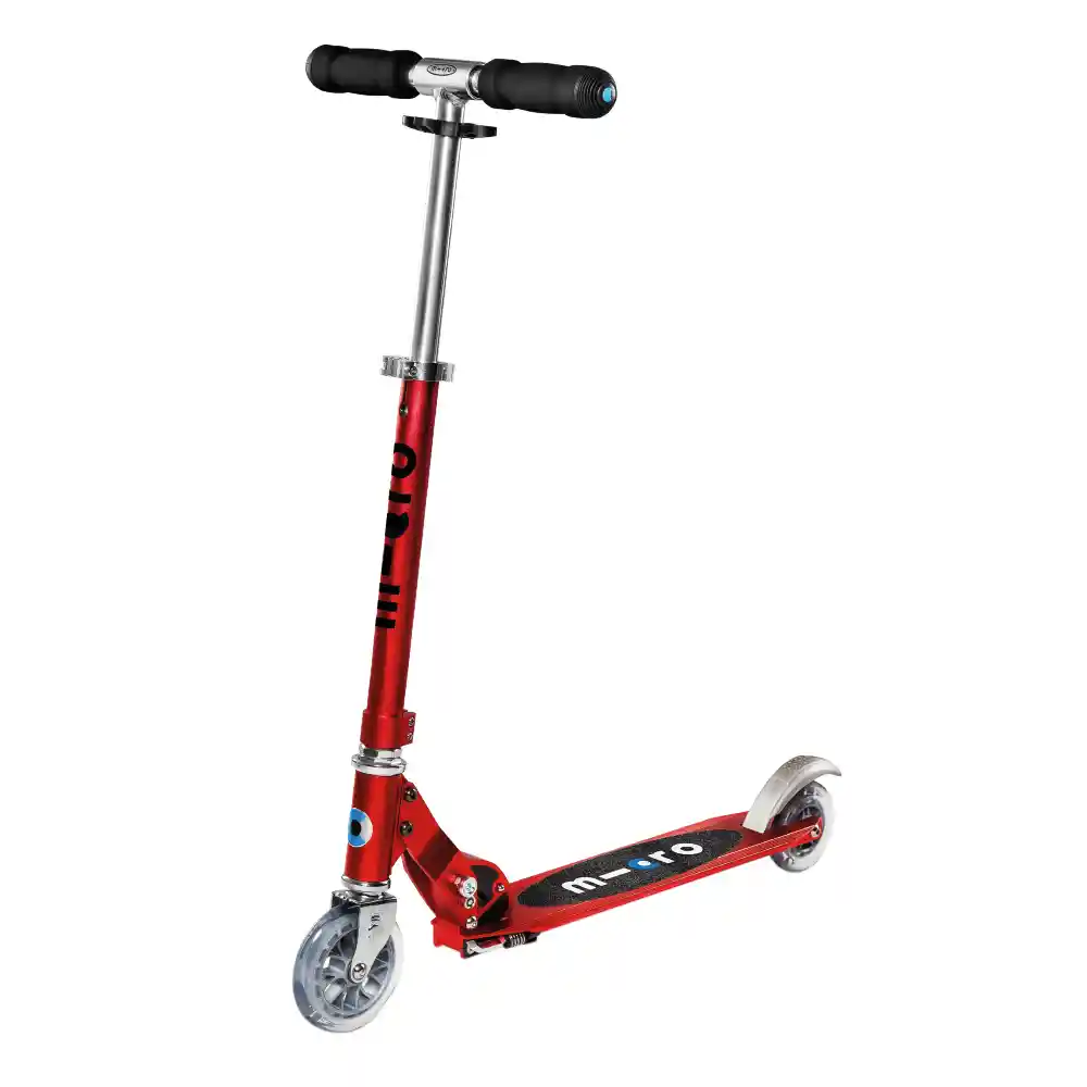 Micro Scooter Sprite rojo De impecable construcción suiza y una calidad sin igual, el scooter Micro Sprite es la introducción perfecta al scooter en 2 ruedas porque es ligero, fácil de manejar y duradero. Es plegable lo que lo hace muy conveniente para transportar y guardar. La patita de apoyo permite que el scooter pueda mantenerse en pie por sí mismo. La altura del manubrio es ajustable para adaptarse a los distintos miembros de la familia. Características: Edad: 6 años en adelante. Altura del conductor: Hasta 152 cm. Resiste: hasta 100 Kg. Tipo de superficie: asfalto. Altura del timón: 65 a 95 cm Peso del scooter: 2,85 kg Tamaño de la caja del scooter: 65,5 x 11,5 x 25 cm Material: aluminio, plástico, silicona Procedencia: Marca de Origen Suizo. Ganador de premios de ingeniería.