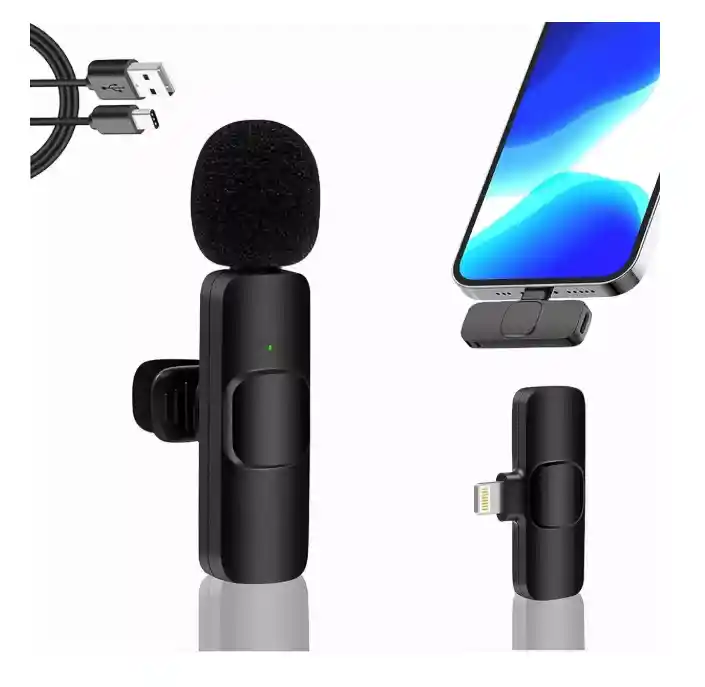 SOMOS MIKI IMPORTS El mini micrófono inalámbrico con clip es tu aliado perfecto para cualquier grabación que necesites hacer en cualquier lugar. Su diseño discreto y compacto lo hace fácil de llevar. • Fácil operación: incluye un receptor y un transmisor. Después de encenderlo, se emparejará automáticamente. Solo inserta y reproduce. Sin cables desordenados. Ideal para crear videos de alta calidad y audios en cualquier momento. Diseñado para Vloggers, Bloggers, Youtubers, Podcasters y entrevistadores. • Calidad de sonido superior: ofrece audio profesional con calidad de CD estéreo de 48 kHz, admite mezcla multicanal en tiempo real, y sincroniza música de fondo con voz en tiempo real. • Utiliza el chipset RF más reciente que transmite en un espectro de frecuencia de 2.4GHz, lo que permite una transmisión inalámbrica sin interferencias y hasta 65 pies (20 m) de distancia. • Extremadamente compacto y liviano, se puede sujetar fácilmente a una camisa o guardar en un bolsillo. Portátil y ligero, fácil de llevar para transmisiones en vivo con carga completa. Funciona hasta 8 horas seguidas. • Conectividad Plug & Play, rápida y sencilla en cuestión de segundos. • Compatible con todas las versiones de iOS.