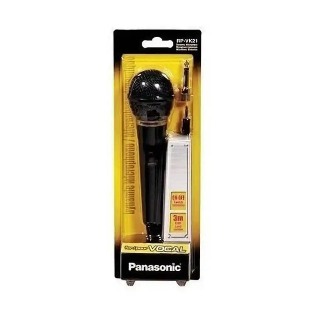 Micrófono Dinámico RP-VK21PP-K Panasonic Negro. Impedancia: 600 Ohm/1kHz. Directividad: Unidireccional. Sensibilidad: -53 dB (0 dB = 1V/Pa 1kHz). Respuesta de Frecuencia (Hz-Khz): 80Hz- 12kHz. Longitud del cable: 3m. Conector: 3.5mm. Cordón de Oro o Níquel: Cable blindado de 30 mm de diámetro. Peso: 177g neto 135g sin cable Contiene: adaptador de clavija a 63mm.
