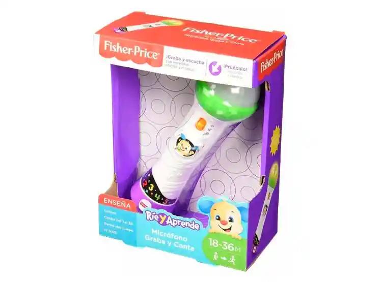 Micrófono Graba y Canta Fisher Price ¡Da vida a los sueños de estrellato de tu pequeño con el Ríe y Aprende® Micrófono Graba y Canta de Fisher-Price®! Ya sea que graben sus propias voces o canten con las divertidas canciones educativas de Perrito, los pequeños la pasarán genial con este increíble micrófono. ¡Karaoke con un genial giro de aprendizaje! Mientras tu pequeño disfruta de las melodías de Perrito, también estará aprendiendo—desde el abecedario y contar del 1 al 2, ¡hasta colores avanzados y opuestos! »Cabeza, hombros, rodillas y pies…»’ Además, las coloridas luces que ‘bailan’ hacen que el juego sea más emocionante. Y, si las estrellas quieren grabar sus propios conciertos, solo presiona el botón de Perrito ¡y empieza a cantar! ¡Añade divertidos efectos de cambio de entonación y ritmos frescos en la modalidad de reproducción! ¡No olvides agregar algunos pasos de baile! Prepara las palomitas de maíz—el espectáculo de tu pequeña estrella está por comenzar. Características: 2 maneras de jugar! Grabar: Graba tu voz y reprodúcela con música divertida y geniales efectos. Cantar: Las animadas melodías enseñan a los pequeños a contar, los colores, el abecedario, los opuestos y las partes del cuerpo. ¡Tú también puedes cantar!. Las brillantes y coloridas luces “bailan” al compás de los ritmos. Enseña a los niños los colores, el abecedario, contar del 1 al 2, los opuestos y las partes del cuerpo. Incluye 2 pilas AAA. En Fisher – Price nos hemos encargado de ayudar a que los padres sientan más confianza en la crianza de sus pequeños por generaciones.