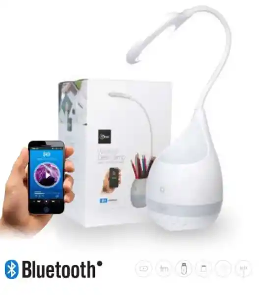 Wireless Desk Touch Lamp. Lámpara Led (3 Intensidades) Low-Medium-Max Función Touch Key Entrada Usb Aux 3.5 mm. Entrada Ranura Micro Sd Función Wireless. Función Manos Libres Voltaje de Entrada 5V Batería Recargable. Poder de Salida: 5W. Temperatura de Color: 5500K-6500K. Lumen Maximo: 600L