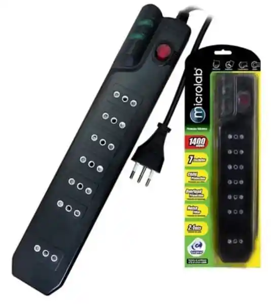 Protector Eléctrico Certificado 1400 Joules Interruptor de Encendido Con Bloqueador Automático Obturador Para Protección de Niños Salida Distanciada Para Enchufes Voluminosos 7 Salidas Outlets
