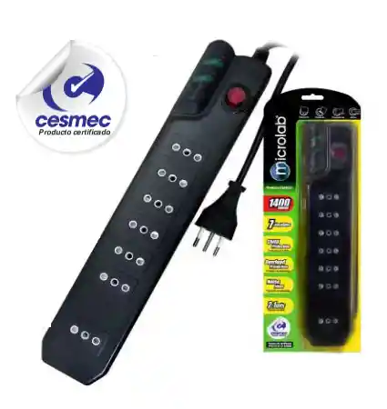Protector eléctrico certificado. Características: 1400 JOULES, interruptor de encendido con bloqueador automático, obturador para protección de niños, salida distanciada para enchufes voluminosos, 7 salidas outlets, cable de 3 metros.