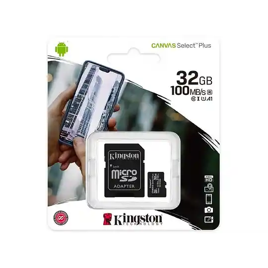 DESCRIPCIÓN Característica Valor Capacidad 32 GB Tipo de tarjeta flash MicroSDHC Clase de memoria flash Clase 10 Velocidad de lectura 100 MB/s Tipo de memoria interna UHS-I Clase de velocidad UHS Class 1 (U1) Clase de velocidad de vídeo V10 Sistemas de archivos soportados FAT32 Color del producto Negro Funciones de protección Resistente a golpes, Resistente a las vibraciones, A prueba de rayos X Sistemas operativos compatibles Android Voltaje de memoria 3.3 V Intervalo de temperatura operativa -25 - 85 °C Intervalo de temperatura de almacenaje -40 - 85 °C Ancho 11 mm Profundidad 15 mm Altura 1 mm Adaptador de memoria incluido SD Cantidad por paquete 1 pieza(s)