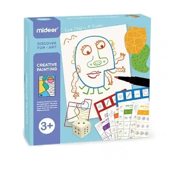 Juego de Dibujo Creativo es un Gran Juego Que Permite a Los Niños Divertirse Dibujando Diseños Abstractos. Se Puede Jugar Solo o de Hasta 6 Niños Que Juntos Podrán Crear un Dibujo Creativo y Divertido. Primero se Elige un Panel de Forma y se Dibuja en el Tablero Base Luego se Turnan Para Lanzar el Dado. Mira lo Que Obtienes en Los Dados Consulta la Tarjeta de Elementos y Copia el Diseño. Miles de Diseños Aleatorios Para Crear. El Set Contiene 3 Marcadores Rojo Azul y Negro Una Goma de Borrar un Dado 6 Paneles de Formas 6 Tarjetas de Elementos y 1 Tablero Base Borrable. Edad Recomendada +3 Años. Dimensiones Del Producto: 21.5 cm x 21.5 cm x 5 cm
