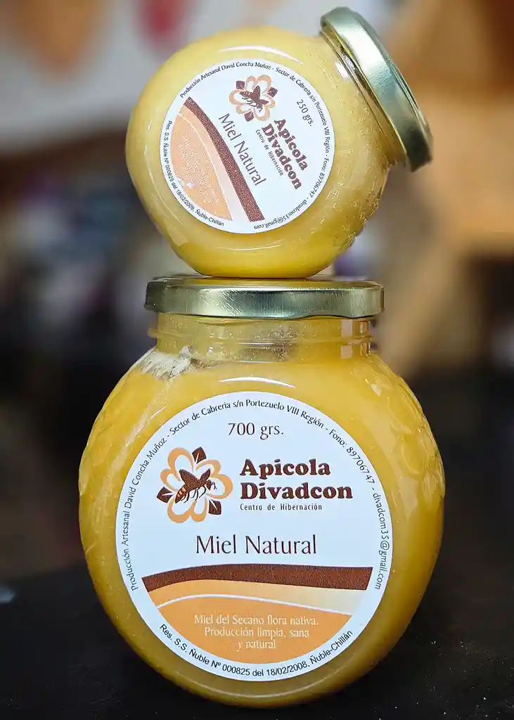Miel 100% Natural. Multifloral nativa, procediente del Secano en la región de Ñuble. Frasco de 250 grs.