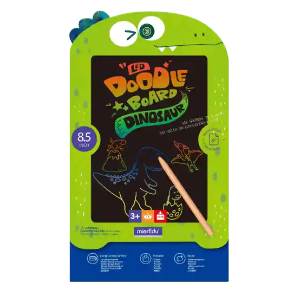 Tableta de escritura LCD con patrón de Dinosaurio sin luz azul, sin deslumbramiento, sin daños a la vista, segura y cómoda para que tus hijos garabateen en cualquier momento. La pantalla colorida de protección ocular proporciona una mejor experiencia de pintura, evitando lesiones en los ojos de un niño por el uso a largo plazo. No más desorden en casa, el tablero de escritura LCD mantendrá a los niños alejados del desorden de crayones, marcadores o tiza. Evite que los colores contaminen la ropa, los muebles, los suelos, las sábanas. Una maravillosa pizarra de dibujo para niños de 3, 4, 5, 6, 7 años. Hecho de cartón duro duradero y muy grueso, seguro y ecológico, súper ligero y fácil de llevar a cualquier lugar. Esta tableta de dibujo para niños adopta la última tecnología LCD sensible a la presión, con pantalla colorida de 21 cm (8.5 pulgadas), la tableta de escritura LCD ofrece suficiente espacio. Simplemente utiliza el lápiz óptico para escribir, dibujar, garabatear o garabatear cualquier cosa que quieras. El gran tablero de escritura tiene una tecla de borrado (ojo de unicornio), puedes simplemente hacer clic en el botón de borrado del tablero de dibujo para borrar el contenido de la pantalla en un segundo. Se recomienda de 5 años en adelante.