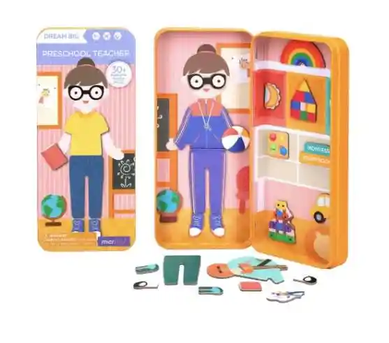 Nuestras cajas de puzzles magnéticos de héroes están diseñadas para alentar a los niños a celebrar y apoyar a estos profesionales que trabajan arduamente. El set de Profesionales de la salud incluye dos escenas y más de 30 piezas de rompecabezas magnéticos, donde pueden disfrazar a su personaje e inventar sus propias historias. Al usar el tacto y el tacto, los niños pueden jugar con ambas manos para estimular el desarrollo del cerebro izquierdo y derecho.Los juguetes de MierEdu están hechos de materiales sostenibles y reciclados, y cuentan con el certificado FSC. Además todos sus juguetes son educativos y fáciles de transportar para poder llevar de viaje. Maletas magnéticas pueden reemplazar el i Pad y mantener a los niños lejos de las pantallas. Se recomienda de 3 años en adelante.