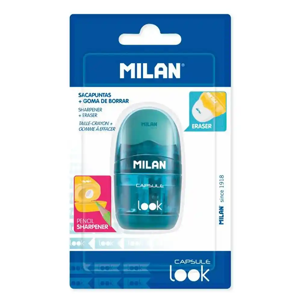 Combinación de goma y sacapuntas. El sacapuntas tiene una cuchilla de acero al carbono afilada y resistente. Ideal para todo tipo de lápices. Variedad en colores.