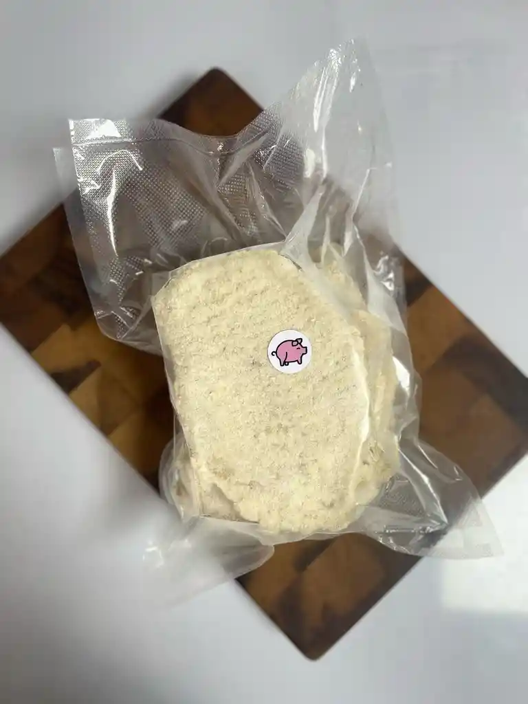 Tradicional lomo de cerdo, apanado de manera casera. En paquete de 1Kg envasado al vacio y congelado. Listo para cocinar junto a tus seres queridos.