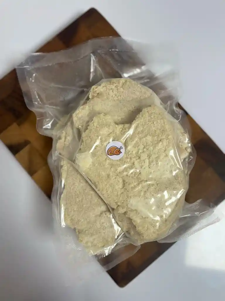 Excelente pechuga de pollo apanada, de manera casera y tradicional argentina. Paquete de 1Kg, envasado al vacio y congeladas. Listas para cocinar junto a tus seres queridos.