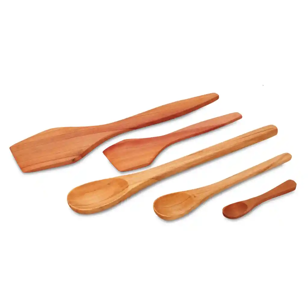 Set de tres cucharas 30cm/ 20cm/13cm, dos espátulas de 30cm/20cm, Raulí. MILENARIA