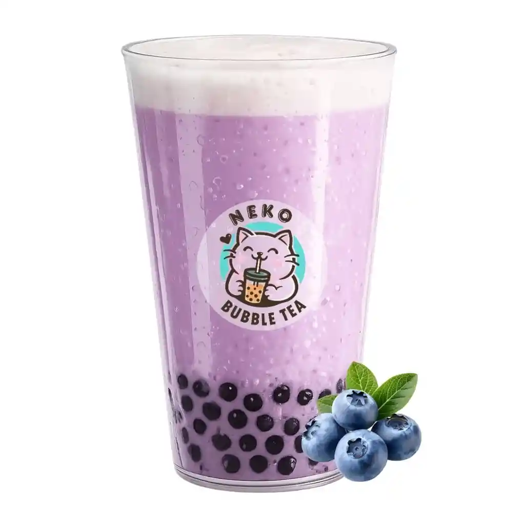Arándanos frescos con leche natural entera, hielo y tapioca.