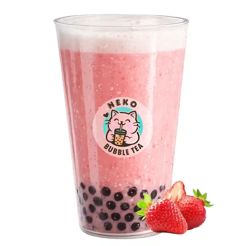 Frutilla fresca con leche natural entera, hielo y tapioca