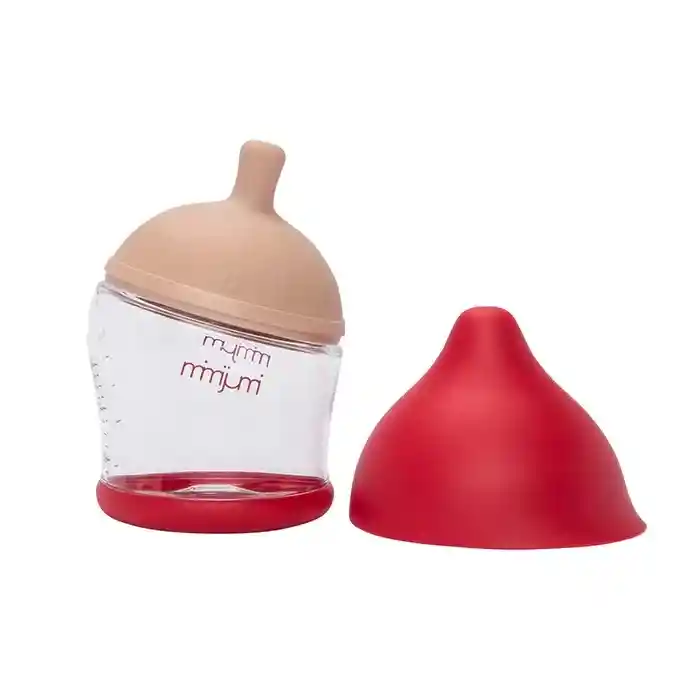 Con un diseño y textura pensado desde el punto de vista psicológico por un padre psiquiatra en Estados Unidos, Mimijumi busca minimizar la confusión de tetina-pecho en el bebé. La tetina está originalmente diseñada y patentada en Austria con un orificio que se adapta a la capacidad de presión del bebé liberando el flujo necesario por la fuerza ejercida. La tetina no libera un chorro de leche como las tetinas de mamaderas corrientes del mercado. Por lo que el bebé seguirá realizando el mismo esfuerzo de succión que realiza al tomar del pecho en un tiempo aproximado de 10 a 15 minutos para terminar su leche (similar a tomar desde el pecho) y no 5 minutos como en mamadera común. Todas estas características de diseño, textura y funcionamiento de la tetina han hecho de Mimijumi la mamadera de transición por excelencia en Chile siendo la más recomendada y elegida como una alternativa segura para que madres que necesitan una pausa de amamantamiento por fuerza mayor no terminen con este proceso. Mimijumi les permite alternar pecho y mamadera naturalmente. Los materiales de Mimijumi son anti microbianos. No acumula olores, hongos ni sabores extraños. No necesitas utilizar esterilizadores ni aparatos que puedan estropear la composición a base de moléculas de agua de esta botella. Sólo esteriliza en una olla en agua hirviendo junto con todas las partes luego de limpiar con jabón suave de mamaderas. El lavado a diario puede continuar con jabón suave de biberón. La tetina tiene válvula anticólicos. Todos los materiales utilizados son libres de químicos dañinos