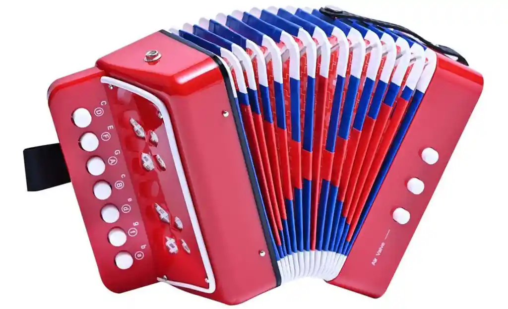 El acordeón es un instrumento musical. Hecho de materiales de resina ABS de grado alimenticio, fuelles y cañas. Los fuelles están hechos de cuero, papel kraft y tela, garantizando una vida útil más larga del acordeón. Acordeón de botones: el acordeón de diseño de botón de 7 teclas puede reproducir 14 notas en total. Expandiendo o comprimiendo el fuelle, el acordeón produce sonido cuando el aire fluye a través de diferentes cañas dentro del instrumento. Instrumento creativo: el acordeón hace un hermoso sonido que atrae fácilmente la atención de los principiantes. Al tocar el acordeón, se puede desarrollar un sentido de la música y la coordinación de la mano. Fácil de aprender: viene con guía de aprendizaje para que sea más sencillo para los principiantes aprender y tocar. Especialmente para quienes inician en la música. Especificaciones ACORDEON INFANTIL DIDÁCTICO (SEMI-PROFESIONAL) - 7 Botones de Tonos - 3 Válvulas de aire - Resistente y ligero Peso (1.30 Kg) - Material: Plástico de primera calidad - Juguete Didáctico - Color: Rojo - Tamaño: 18x17x10cm