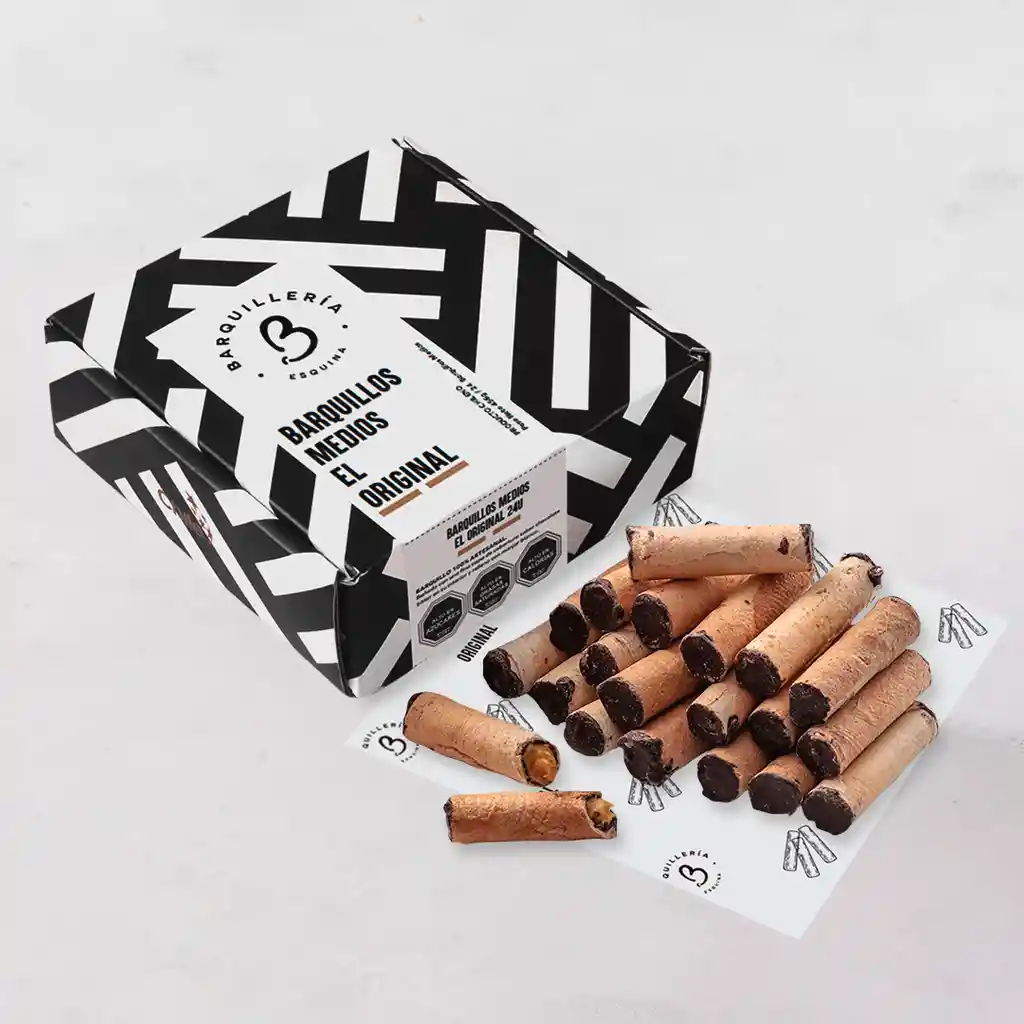 Caja de 24 mini barquillos 100% artesanal bañados con una fina capa de cobertura de chocolate bitter en su interior y relleno de manjar blanco. Contiene gluten, soya y leche. Elaborado en líneas que también procesan huevo, almendra y nueces. Medidas del barquillo: 6 cm de largo x 1,5 cm de diámetro aprox. Son productos artesanales elaborados a mano por nuestros barquilleros por lo que puede variar el tamaño entre ellos, pero nunca el amor con que se hacen. Se calculan para una celebración, 4 barquillos por persona. Recomendación: Mantener en un lugar fresco y seco (20º) y 65% humedad.