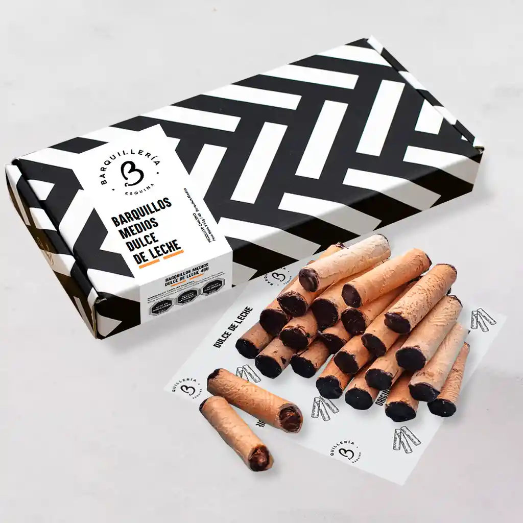 Caja de 48 mini barquillos 100% artesanal bañados con una fina capa de cobertura de chocolate bitter en su interior y relleno de dulce de leche caramelizado. Contiene gluten, soya y leche. Elaborado en líneas que también procesan huevo, almendra y nueces. Medidas del barquillo: 6 cm de largo x 1,5 cm de diámetro aprox. Son productos artesanales elaborados a mano por nuestros barquilleros por lo que puede variar el tamaño entre ellos, pero nunca el amor con que se hacen. Se calculan para una celebración, 4 barquillos por persona. Recomendación: Mantener en un lugar fresco y seco (20º) y 65% humedad.