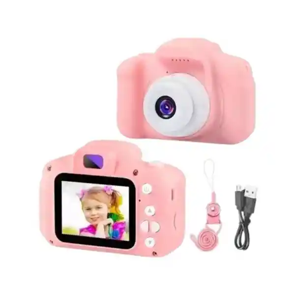 Cámara digital con pantalla de 2.0″ lente fijo ROSADA, perfecta para niños, Incluye marcos para personalizar fotos. Cuenta con batería recargable incluye cable USB para cargar. Fácil de usar y diseñada para capturar fotos y videos de forma divertida. Ideal para que los más pequeños den sus primeros pasos en el mundo de la fotografía. incluye una tarjeta de memoria de 32 GB, lo que te permite almacenar una gran cantidad de contenido. Medidas: 13x7cm caja Carga: USB