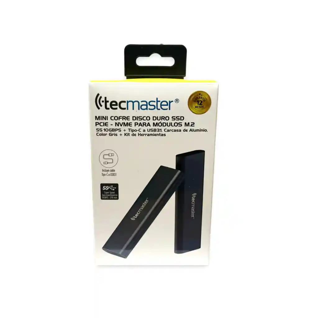 Mini Cofre SSD PCI-E Hasta 2Tb. Este mini cofre esta fabricado con una carcasa aleacion de aluminio que mejora la disipacion del calor, Liviano y altamente resistente. Tamaño: 102*33*11 mm. Caracteristicas: Indicador Led: E/S. Material carcasa: Aleacion Aluminio. Interfaz externa: Tipo C USB 3.1. Capacidad max. soportada: SSD hasta 2TB. Tasa de transmision de datos: 10 Gbps. Compatibilidad modulos M.2: 2230-2242-2260-2280. Plug and Play: Intercambio en caliente sin reinicio, extraccion segura. Compatible con SO: Windows SE/ME/2000/XP/Vista/Windows7/8/10 y MAC OS, Linux