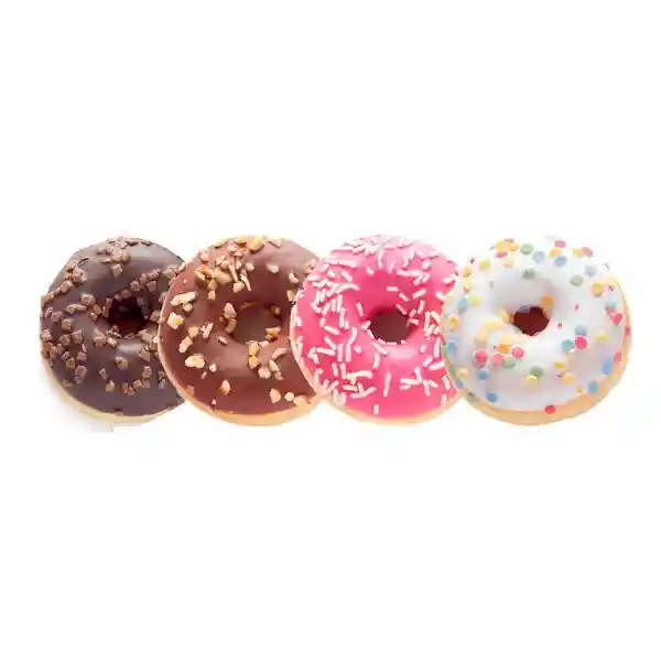 Caja Con 4 Unidades. 1 Rellena de Frutilla + 1 Rellena de Nutella + 1 Glaseada de Cacao Sin Relleno + 1 Glaseado Con Chispita.