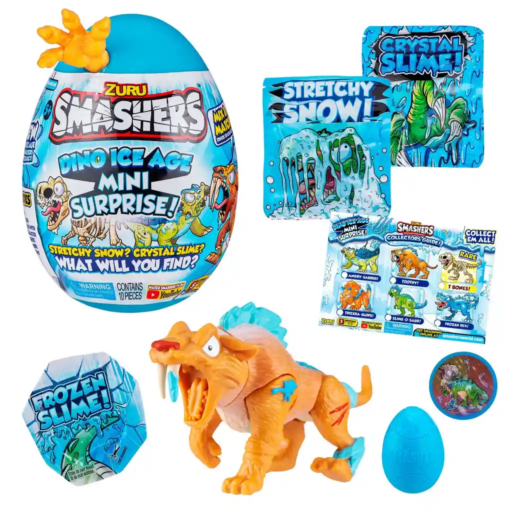¡Prepárate para una emocionante aventura llena de acción sumergiéndote en el mundo jurásico! Este mini huevo smashers era del hielo incluye más de 25 heladas sorpresas en el interior para construir un exclusivo Dino Smash-o-sauro congelado, con este huevo podrás capturar y revivir el mágico momento cuando un dinosaurio sale del cascarón. En vista de que estos huevos son sorpresa, no sabrás que dinosaurio te ha tocado hasta que este haya nacido. Colecciona todos los dinosaurios que puedas y arma tu propio mundo jurásico. Cada huevo sorpresa se vende por separado.