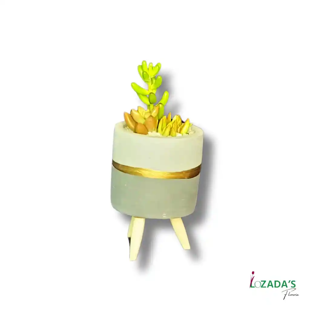 Un detalle encantador que fusiona diseño y naturaleza. Nuestro Mini Jardín de Suculentas se presenta en una elegante maceta cilíndrica de concreto con acabado mate, detalles en dorado y base de tres patas estilo escandinavo, ideal para quienes buscan un toque moderno y natural. Incluye una delicada combinación de suculentas de fácil cuidado, seleccionadas por su color y forma para crear una composición armónica y decorativa. Perfecto para escritorios, mesas pequeñas, repisas o como regalo especial. ✨ Ideal para decorar con estilo sin ocupar mucho espacio. 🌱 Bajo mantenimiento y gran durabilidad.