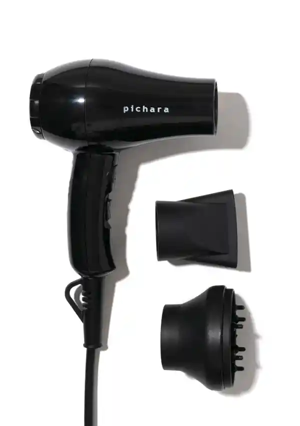 Secador mini Pichara es un secador super liviano 0.58 KG, fácil de transportar, diseñado para dar un flujo de aire más fuerte con 2 velocidades y 3 temperaturas, Incluye: una boquilla, un mini difusor y el secador. Producto Pichara