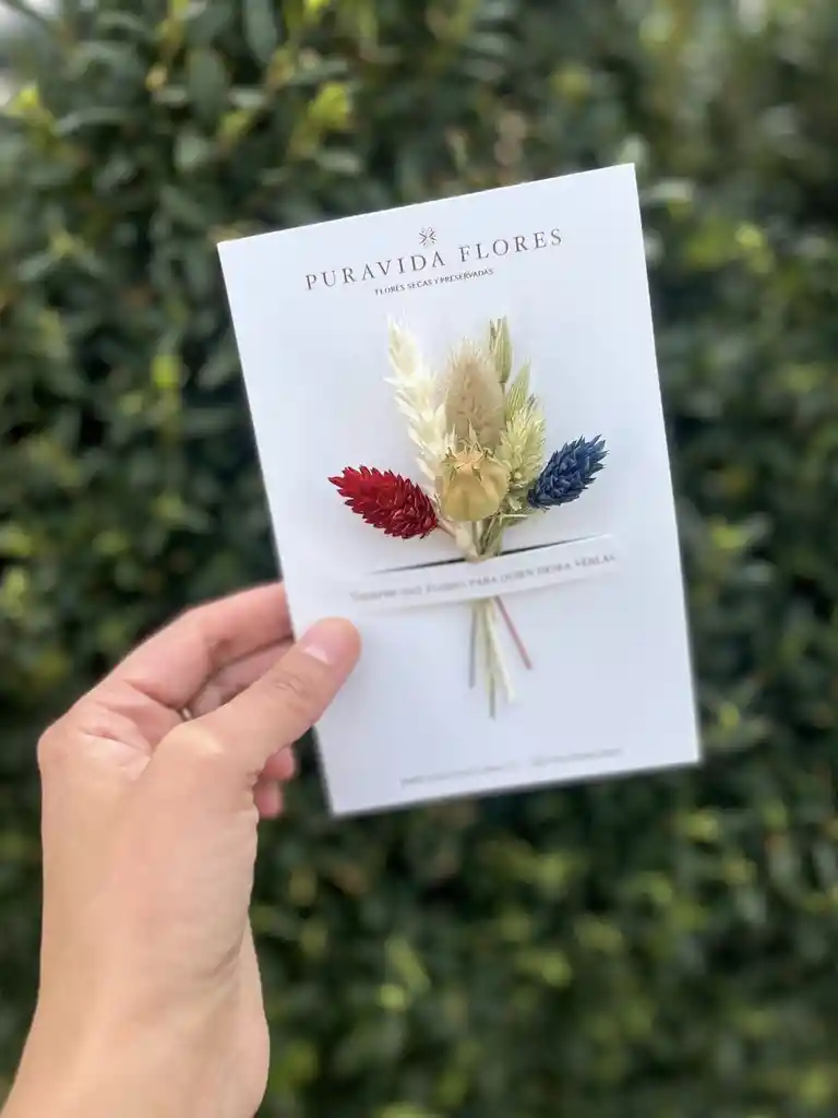 Edición especial que incluye un mini ramito de flores secas holandesas 100% en los tonos de nuestra Bandera Chilena (rojo, azul y blanco). Cada uno es creado a mano, por lo que todos son diferentes entre sí, sorpréndete con el diseño del día. Cada ramito viene presentado en un tarjeta que sirve para regalar y sorprender a alguien con unas palabras (felices las escribimos por tí), también son ideales para vestir la mesa cuando tengas invitados (sobre cada puesto o junto a las servilletas), perfecto como botonera para un Novio, para pequeños rincones de tu casa, para decorar una vela y mil opciones más.