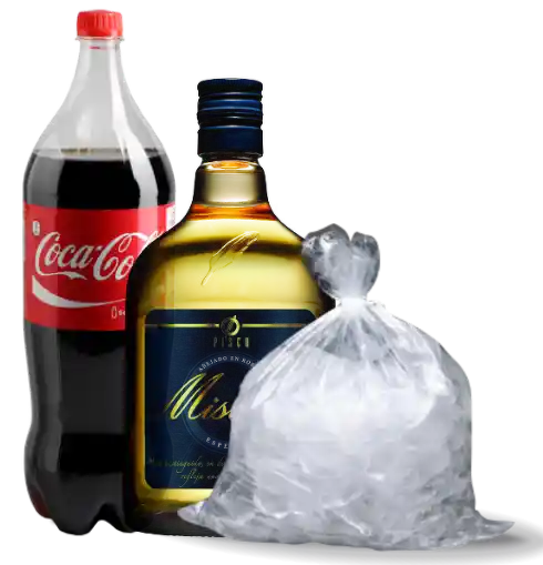 Pisco Mistral 35°, 1Lt + Bebida 1.5 Lt+ Hielo