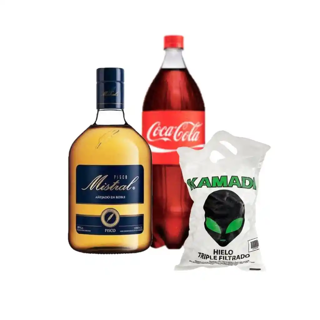 Promo: Mistral 35° 1Lt + Bebida 1.5Lt + Hielo