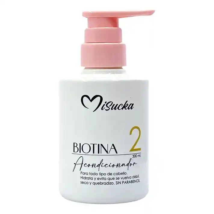 Acondicionador capilar con biotina diseñado para hidratar, fortalecer y mejorar la apariencia del cabello, ayudando a prevenir el quiebre y mantenerlo más suave y manejable. Ideal para todo tipo de cabello, especialmente débil o seco. Contenido 300 ml. Producto original marca Misuka. Uso externo.